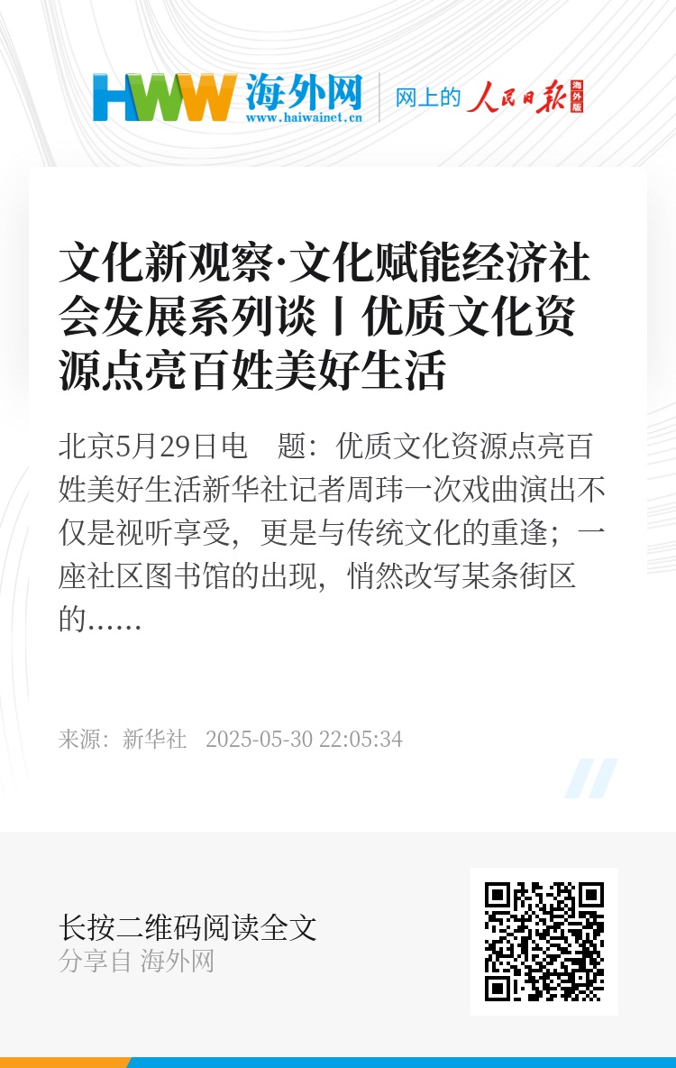 新华社北京5月29日电 题:优质文化资源点亮百姓美好生活