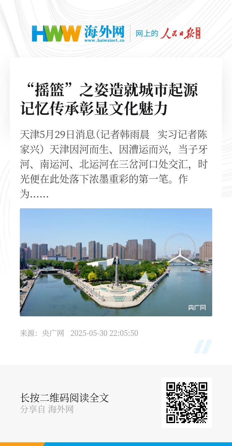 央广网天津5月29日消息(记者韩雨晨 实习记者陈家兴)天津因河而生、因漕运而兴,当子牙河、南运河、北运河在三岔河口处交汇,时光便在此处落下浓墨重彩的第一笔。作为“三河五岸”的地理枢纽,红桥区以“天津摇篮”之姿,造就了天津城市的起源成长,也孕育了底蕴厚重的津派文化。