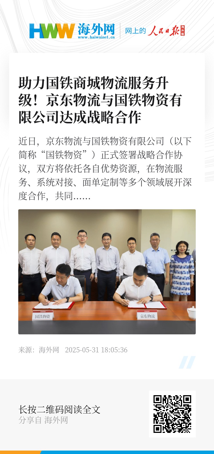此次战略合作协议的签署,标志着京东物流与国铁物资有限公司在物流领域的合作迈出了坚实的一步。未来,双方将携手共进,共同推动供应链的数智化发展,在为国铁商城用户提供更加优质、高效物流服务的同时,为物流行业的创新和发展注入新的活力。