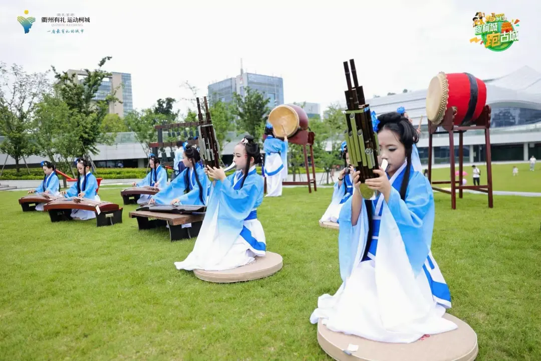 从千年古城到现代新城,一路惊喜、处处童趣。在小西门广场上,孩子们与立春鼓社默契配合,咚咚鼓声仿佛敲响节气文化的千年脉搏。步入衢州古城鹿鸣大草坪,身着戏服的孩童们粉墨登场,清亮婉转的西安高腔诉说衢州故事。抵达衢州市民公园万人广场,活力四射的儿童乐队奏响动感旋律,为冲刺的家庭注入满满能量。