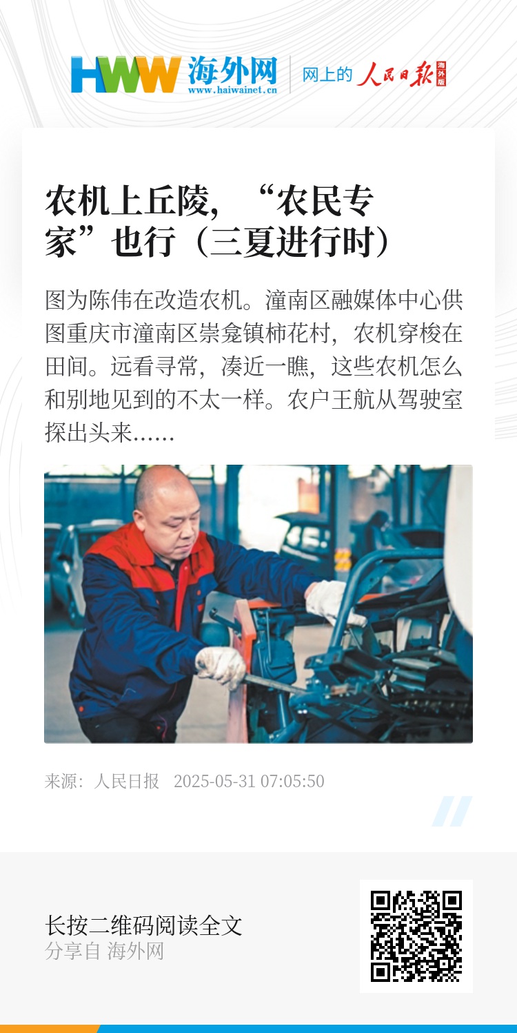 【编辑点评】“馒头山,鸡窝地,扛着锄头种玉米。”这曾是重庆一些地区农业生产的状况。当地地形起伏大,适用农机短缺,陈伟这样的“农民专家”,因地制宜对农机改造升级,助力“斗笠丘”成为好农田。在我国,丘陵山区耕地面积约占1/3。让农机开上山坡,既靠“农民专家”贡献智慧,更需要专业的农机企业瞄准农业生产急需,推出更多适配山地的小微农机,让乡亲们有机可用、有机好用,实现增产增收。