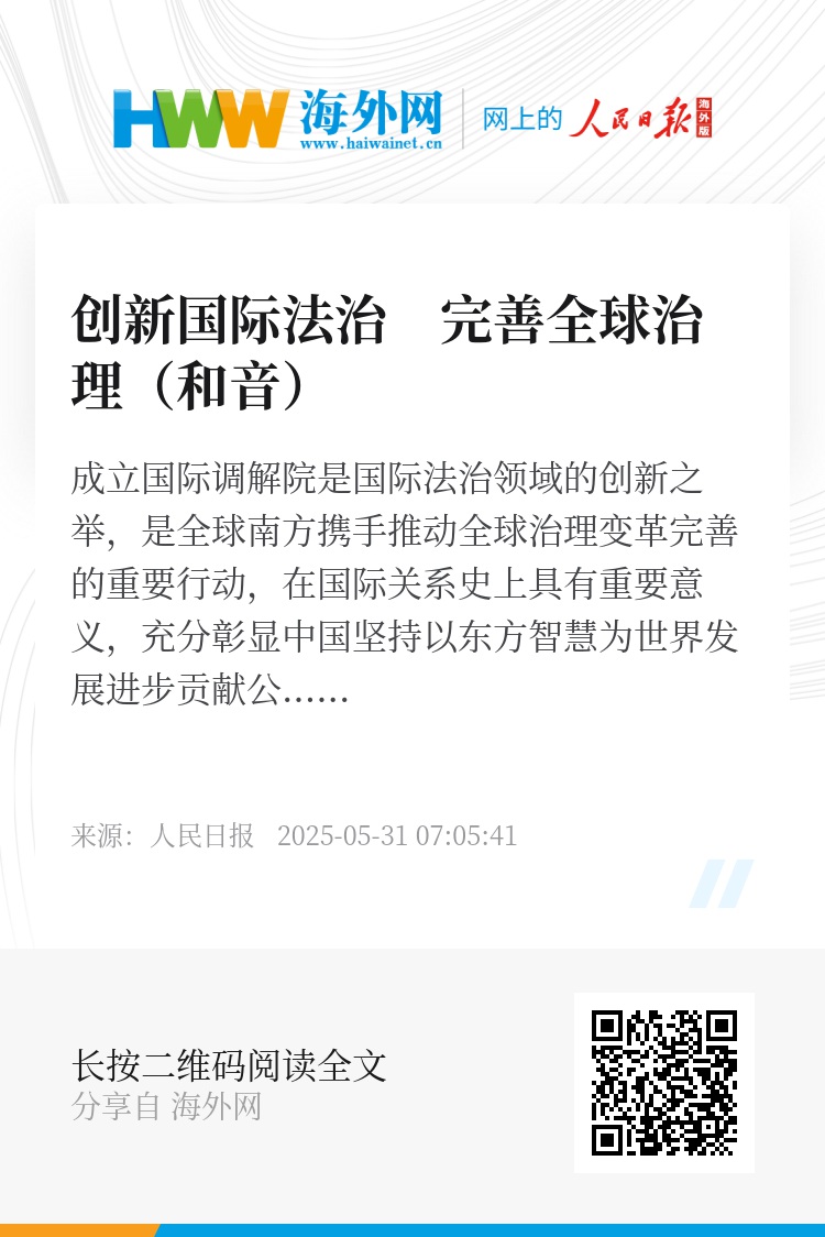 成立国际调解院是国际法治领域的创新之举,是全球南方携手推动全球治理变革完善的重要行动,在国际关系史上具有重要意义,充分彰显中国坚持以东方智慧为世界发展进步贡献公共产品的责任担当