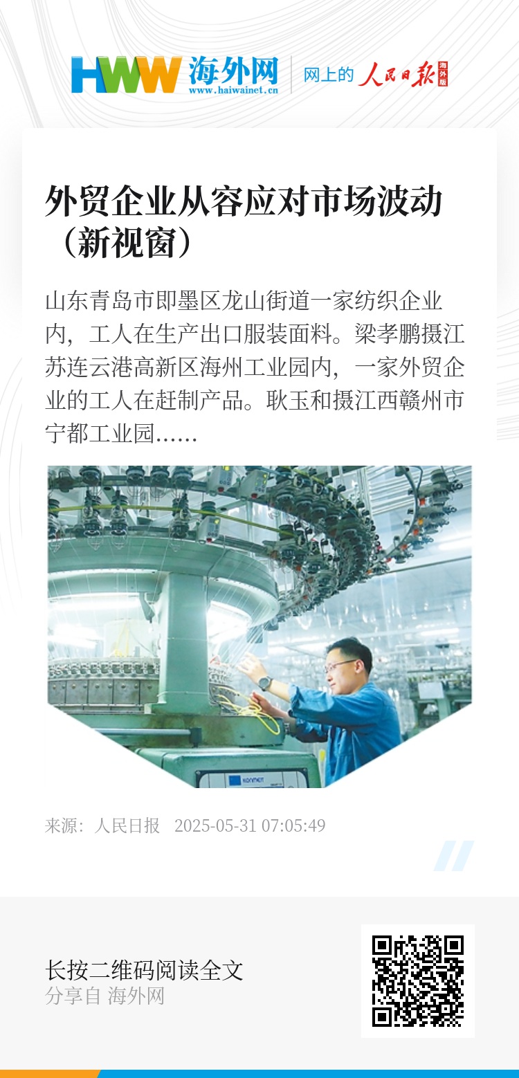 “这几天,美国加州、纽约多地客户催我们发货,最快的一批货已经从上海发出,订单追加了10%左右。”四川省外贸机械进出口有限责任公司董事长欧阳凯说,全球市场有挑战也有机遇,会根据最新情况灵活调整,加大力度开拓更多海外市场,全力稳住外贸订单。