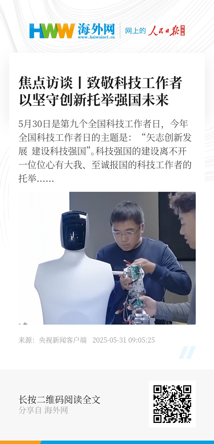 5月30日是第九个全国科技工作者日,今年全国科技工作者日的主题是:“矢志创新发展 建设科技强国”。科技强国的建设离不开一位位心有大我、至诚报国的科技工作者的托举。正是他们在实验室里的反复钻研,在关键技术研究上的日夜攻关,才有了一次次创新和突破。