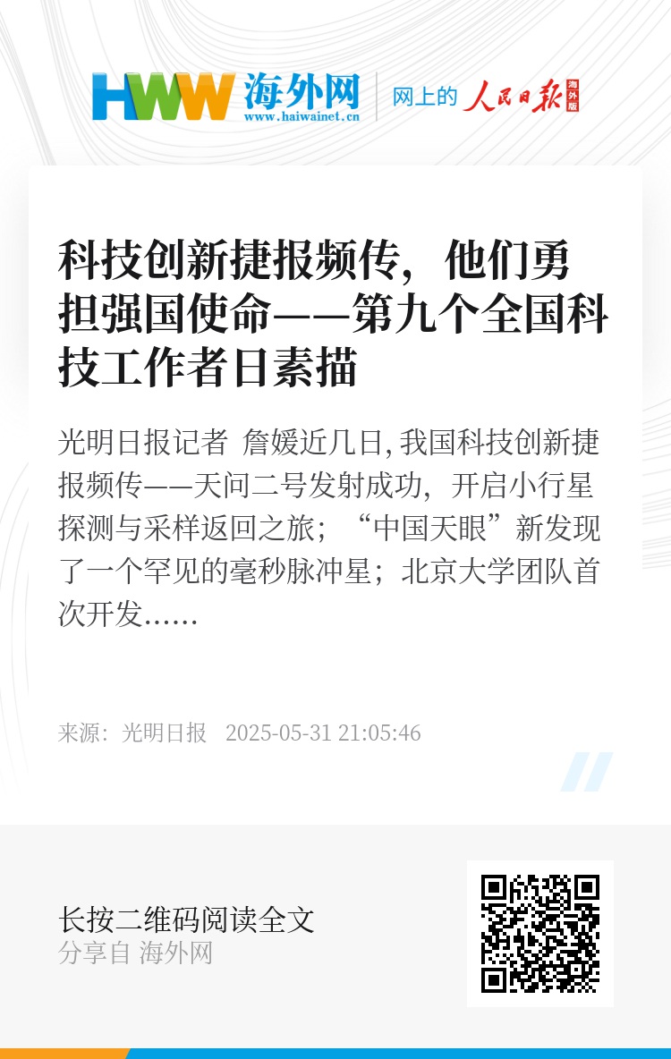 在全国科技工作者日,有太多的科技工作者像他们一样,坚守在实验田里、科研仪器旁,扎根一线、勇攀高峰。他们以科技报国为己任,在基础研究、工程技术、乡村振兴等领域默默耕耘,用智慧和汗水担当起科技强国的使命。