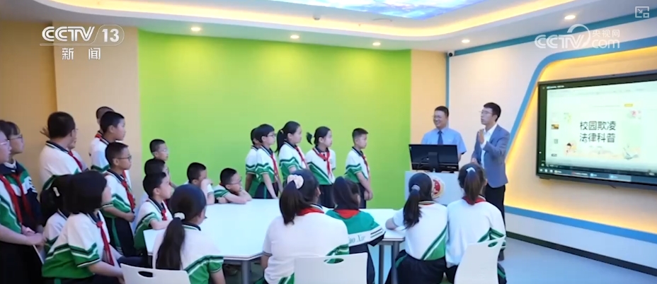 在甘肃通渭,辖区学校迎来了检察官和司法人员送上的《律法护航 青春飞扬》法治课。还有的学生被邀请到当地未成年人“一站式”保护中心,现场观看普法视频,体验VR、AR、法律知识竞答、法治沙龙等活动。