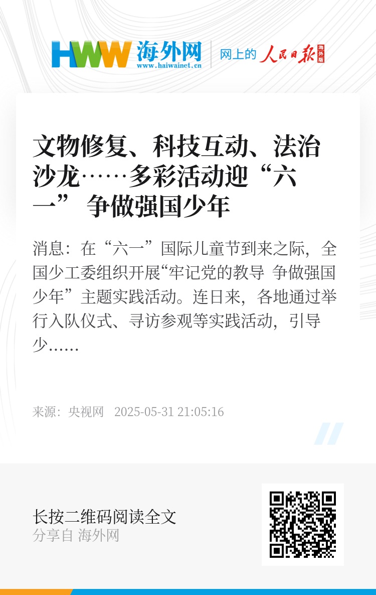 “六一”儿童节前夕,多地精心组织形式多样的活动,为孩子们安全健康成长保驾护航。