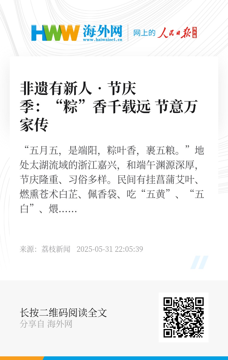 在嘉兴,承载着文化厚度,饱含着人情温度的节日记忆,也将随着粽子的清香,代代相传,隽永不息。