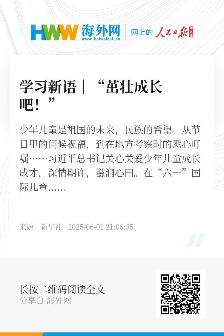 少年儿童是祖国的未来,民族的希望。从节日里的问候祝福,到在地方考察时的悉心叮嘱……习近平总书记关心关爱少年儿童成长成才,深情期许,滋润心田。在“六一”国际儿童节到来之际,祝愿孩子们节日快乐,茁壮成长!