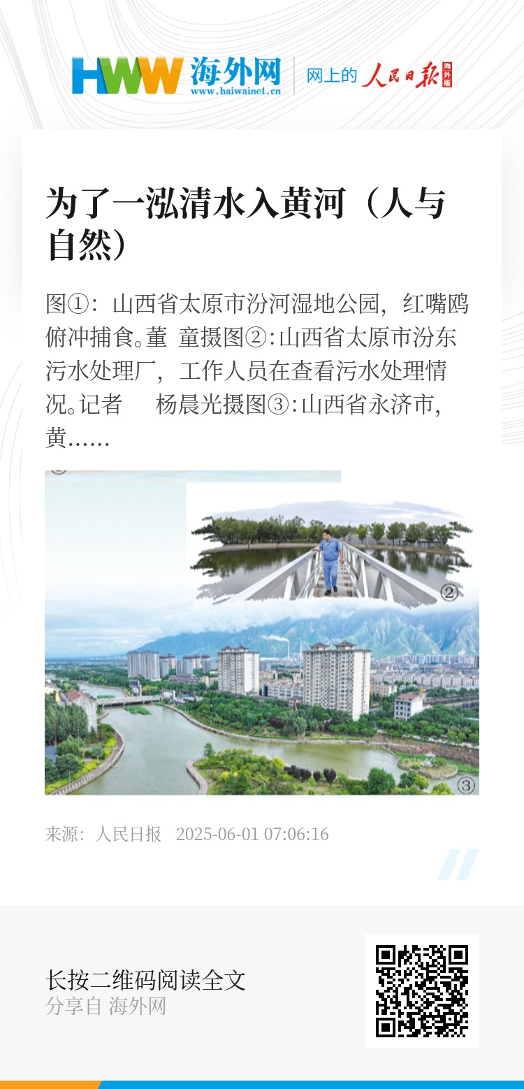 2023年,山西印发《“一泓清水入黄河”工程方案》,实施生态保护工程285个项目、投资近千亿元,努力实现“水量丰起来、水质好起来、风光美起来”的目标,让“一泓清水入黄河”。截至目前,项目已全部开工,完工超六成。