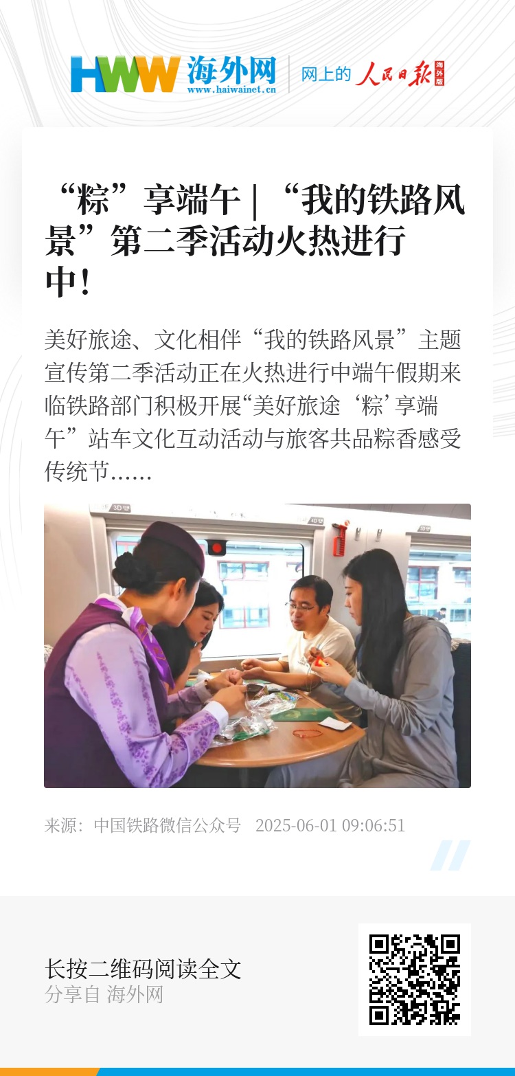 南昌客运段、福州客运段在北京、上海、广州等方向的列车上精心策划了“美好旅途 ‘粽’享端午”主题活动,让旅客在旅途中也能感受到浓浓的节日氛围,体验传统文化的独特魅力。