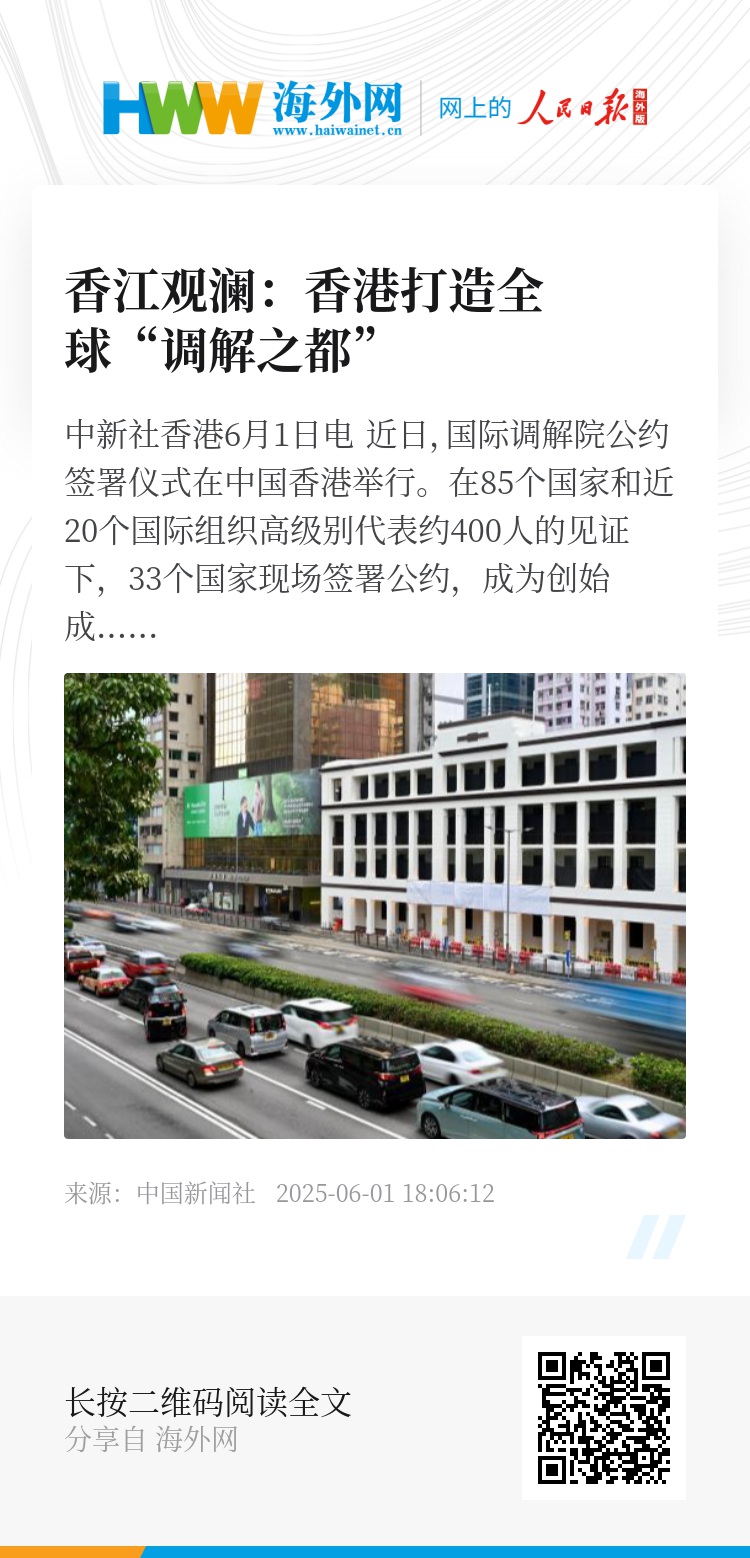 国际调解院的成立,标志着用“以和为贵”的东方智慧解决国际矛盾和纷争得到广泛认同和支持。展望未来,香港可充分发挥自身所长,结合东西方优势,建立健全全球调解标准与规范,真正将香港建设成为世界“调解之都”。(中新社记者 香卢平)