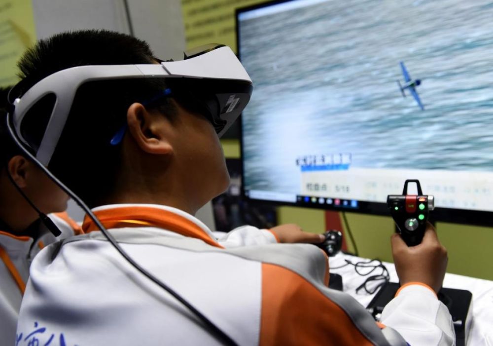 北京市八一学校的学生在北京市中小学生特色科技活动展示上体验VR技术(2018年11月24日摄)新华社记者 罗晓光 摄。