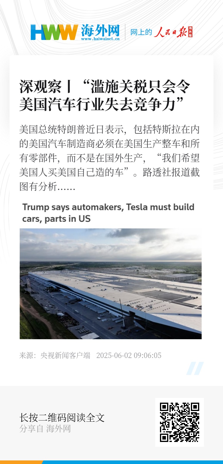 对外经济贸易大学国际经贸学院教授崔凡分析指出,除了汽车关税,钢铝等很多汽车所需的原材料都被征收了高额关税,这导致美国汽车企业的成本大涨,许多企业不得不提价或者裁员。而滥施关税不仅无法让汽车制造业回流美国,更会把美国汽车制造业和全球产业链隔绝开来,最终导致其失去竞争力。