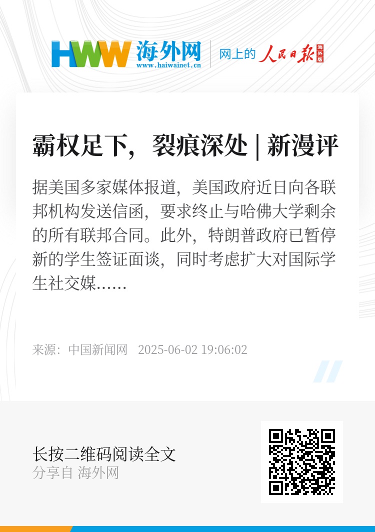 美国政界踏出裹挟着偏见与霸权的“铁蹄”,将国际学生的正当权利践踏在政治利益的泥沼之中。它践踏的,不仅是全球学子对知识无国界的信仰,更是自诩“自由灯塔”的虚伪称号。其脚下的裂痕不仅出现在校园,还会蔓延至美国社会的方方面面。