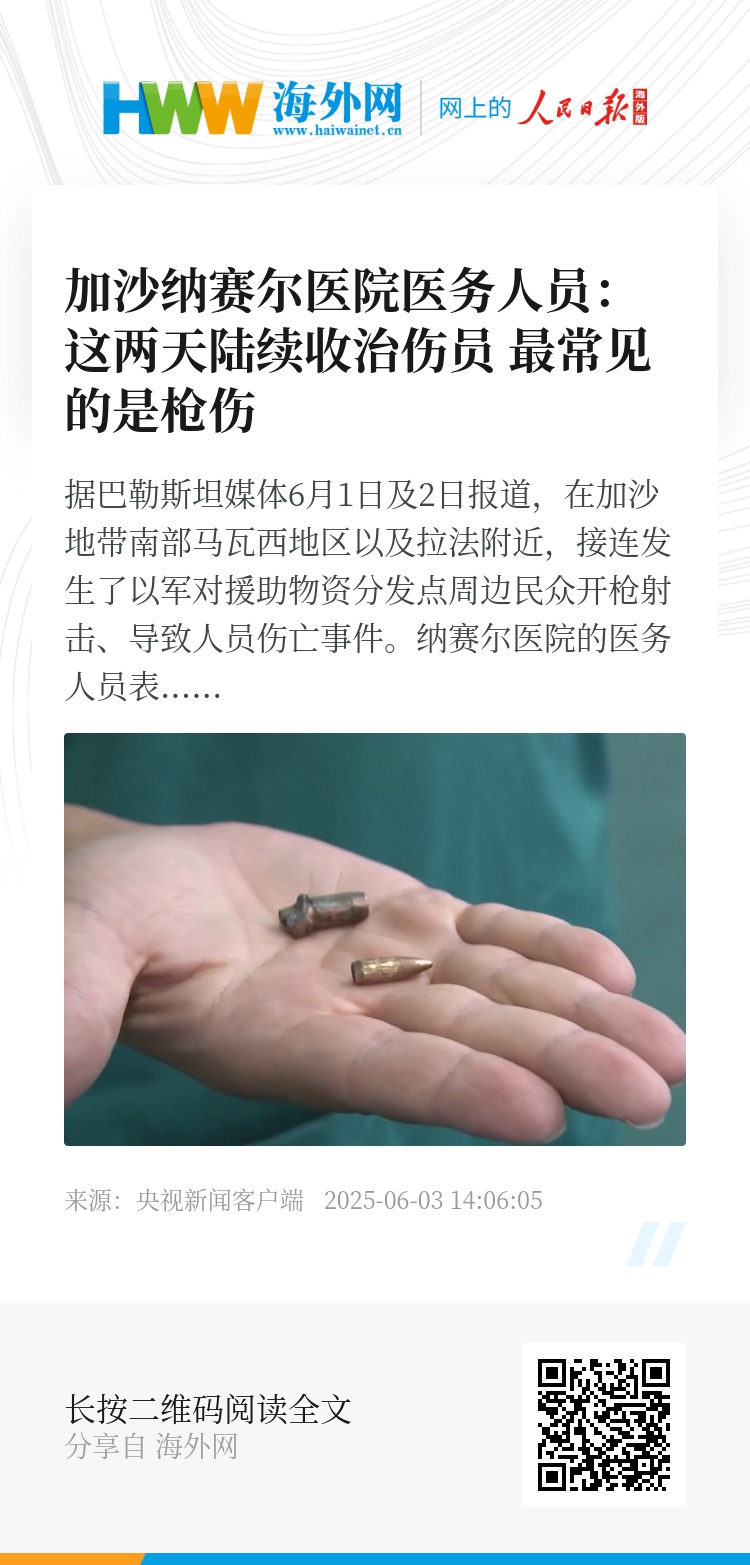 据巴勒斯坦媒体6月1日及2日报道,在加沙地带南部马瓦西地区以及拉法附近,接连发生了以军对援助物资分发点周边民众开枪射击、导致人员伤亡事件。纳赛尔医院的医务人员表示,他们自6月1日早上开始,便不停收治伤员。