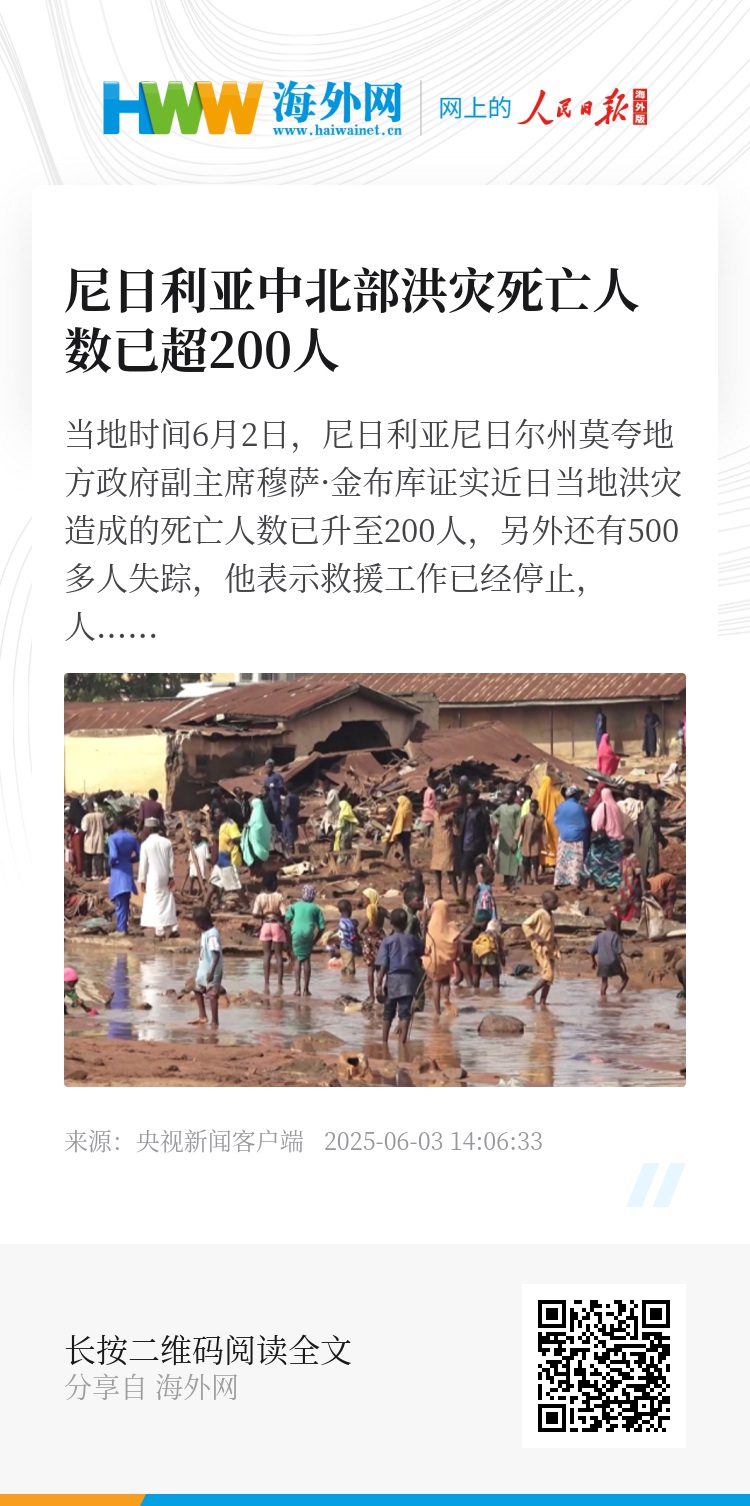当地时间6月2日,尼日利亚尼日尔州莫夸地方政府副主席穆萨·金布库证实近日当地洪灾造成的死亡人数已升至200人,另外还有500多人失踪,他表示救援工作已经停止,人们认为失踪人员已无生还可能,目前为防止疾病蔓延,工作人员正加紧掩埋尸体。