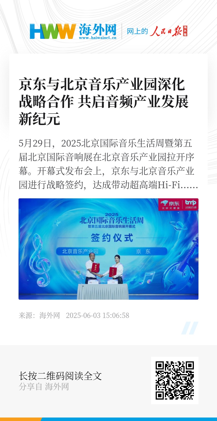 在内容生态领域,双方将深化短视频、直播等创新形式的合作。北京音乐产业园将整合优质内容创作资源,为京东输送Hi-Fi产品相关专业内容;京东则将提供全域推广资源与技术加持,强化双方在音频产业领域的专业影响力。此外,双方还将定期举办专项活动,促进产业链上下游的深度交流与合作。