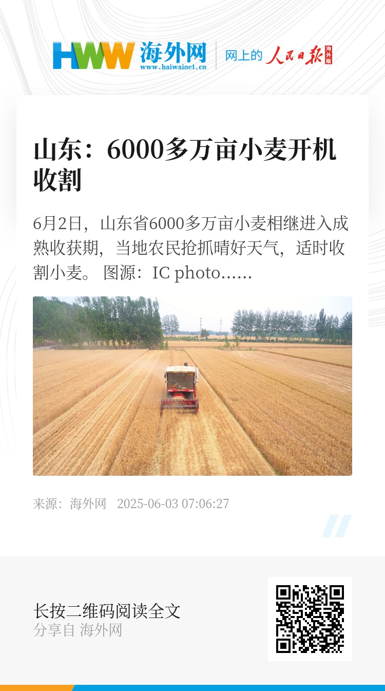 32867628,.山东:6000多万亩小麦开机收割,.2025-06-03 07:00:27,.204441,.张荣耀、李萌