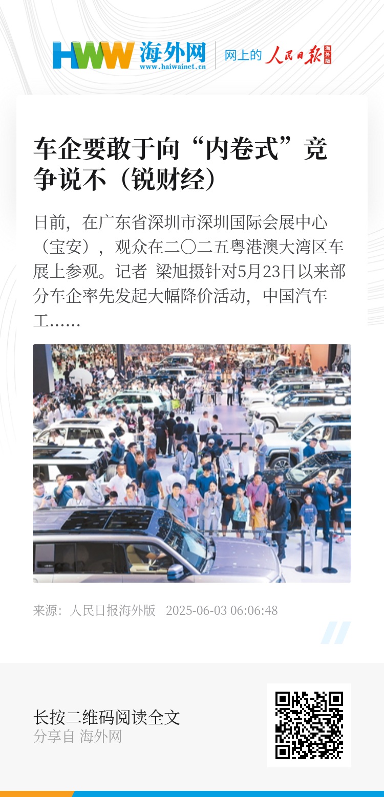 针对5月23日以来部分车企率先发起大幅降价活动,中国汽车工业协会日前发布倡议呼吁,希望全行业同心协力,共同维护公平竞争秩序,促进行业健康、可持续发展。