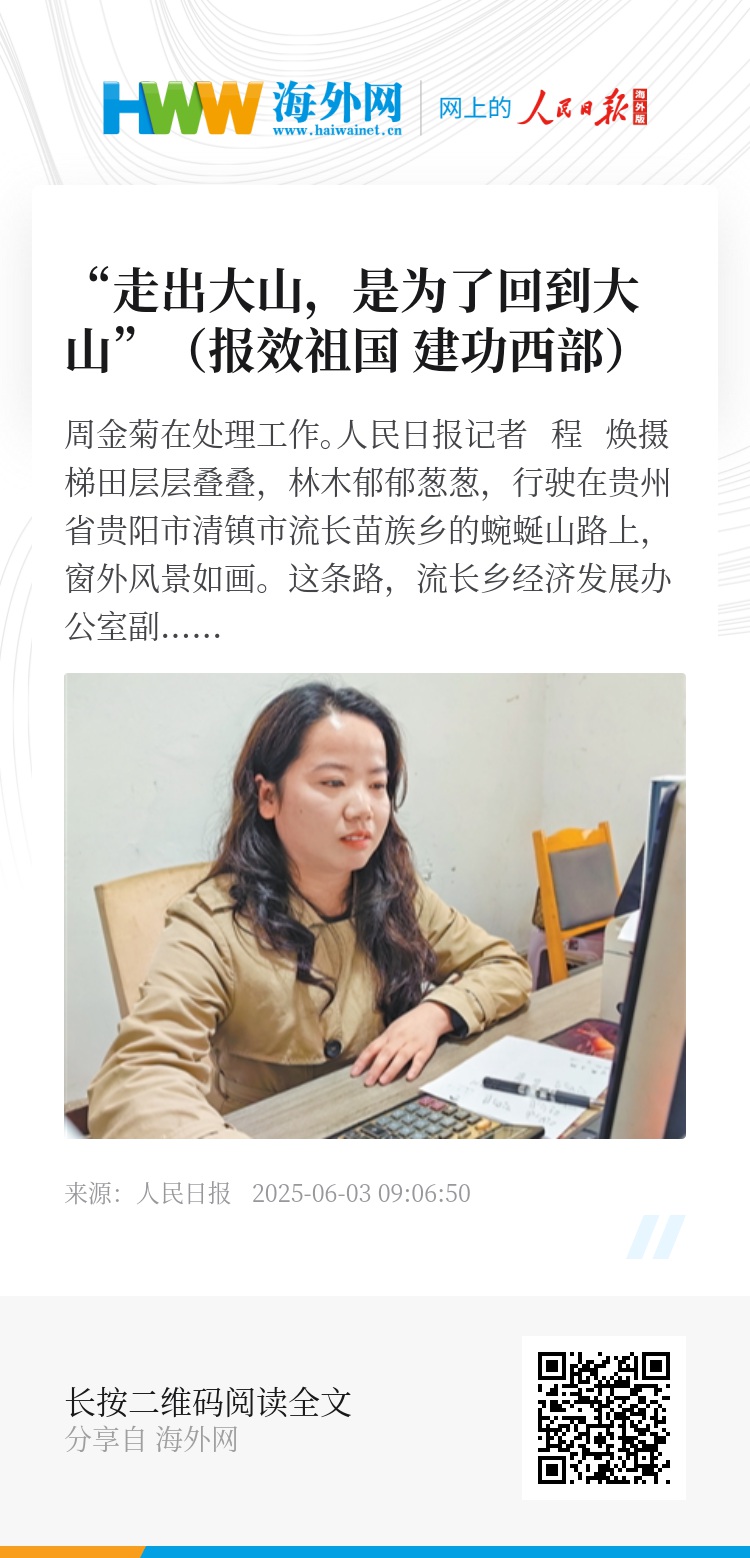 周金菊奶奶双目失明,父母常年在外务工,拼尽全力撑起一家人的生活。在资助政策和社会爱心力量的帮扶下,周金菊顺利完成了学业。正当大伙以为周金菊要留在大城市发展时,这个年轻姑娘竟然又回来了,“走出大山,是为了回到大山,更好地反哺家乡。”毕业时,周金菊放弃在东部城市就业的机会,毅然决定考回老家。