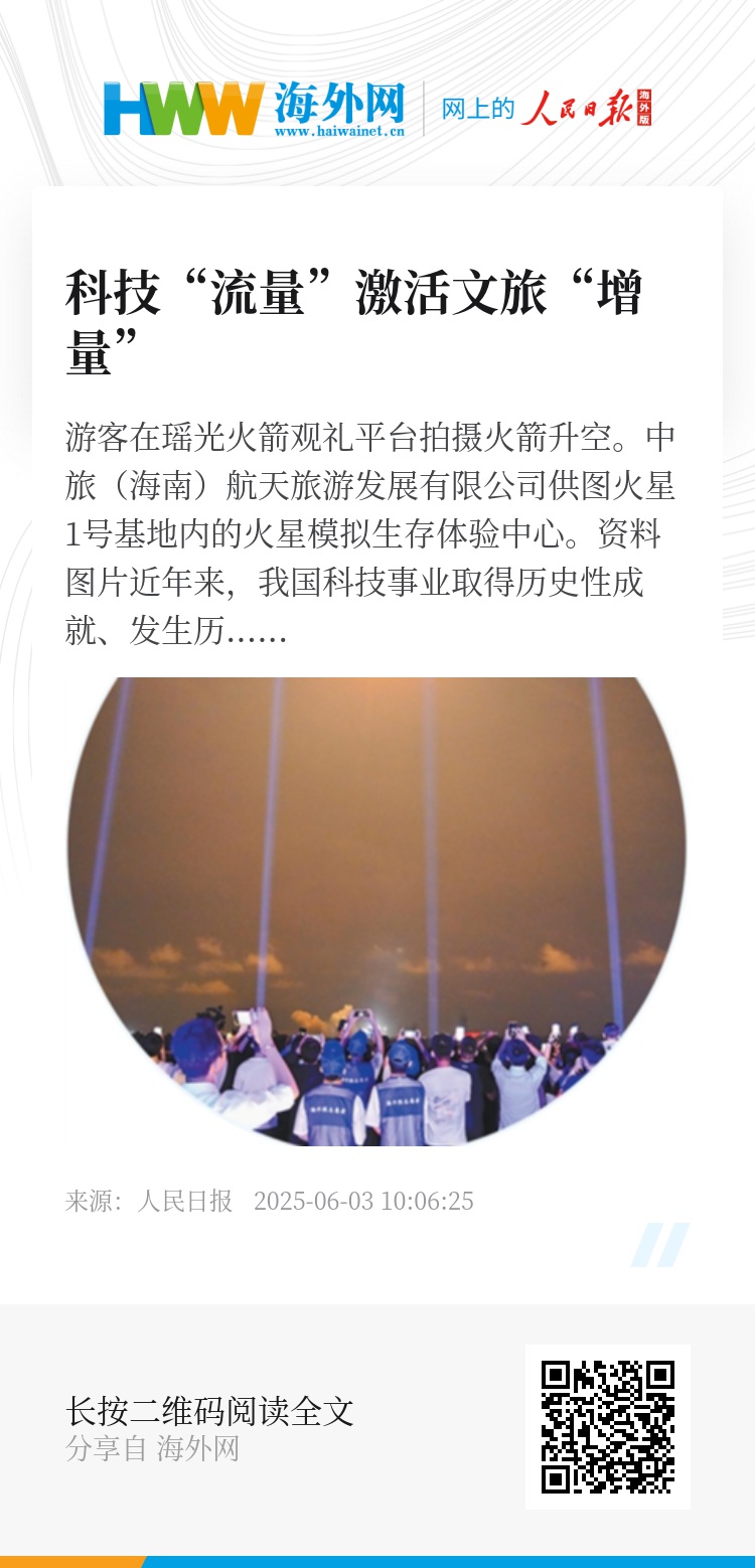 这几天,瑶光火箭观礼平台正在进一步改造完善,邻近的航天科普中心等设施也在升级。“未来,我们将打造发射观礼、航天研学、工业游览、休闲度假等产品谱系,融合新平台、新场景,让游客有新体验、新收获。”王大志说。