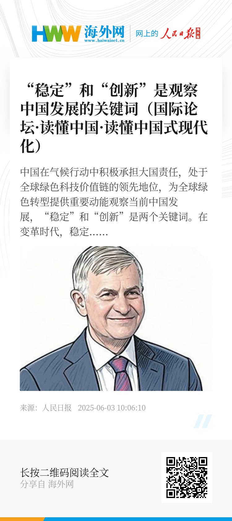 观察当前中国发展,“稳定”和“创新”是两个关键词。在变革时代,稳定对世界至关重要;没有创新,人类就无法应对所面临的挑战。