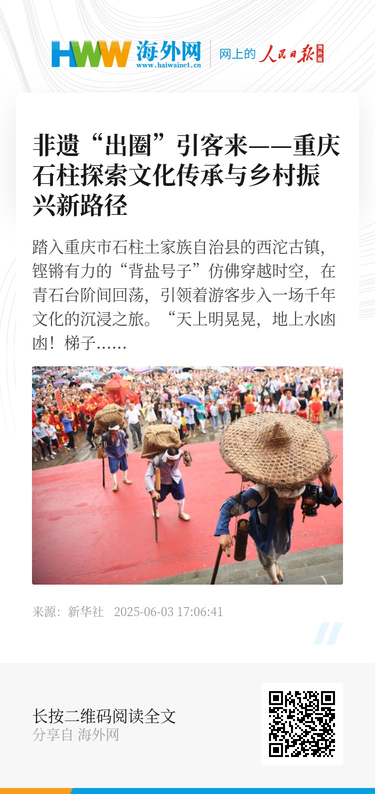 踏入重庆市石柱土家族自治县的西沱古镇,铿锵有力的“背盐号子”仿佛穿越时空,在青石台阶间回荡,引领着游客步入一场千年文化的沉浸之旅。“天上明晃晃,地上水凼凼!梯子陡又陡,越走越好走!”这不仅是背二哥们的号子,更是石柱非遗传承的生动注脚。