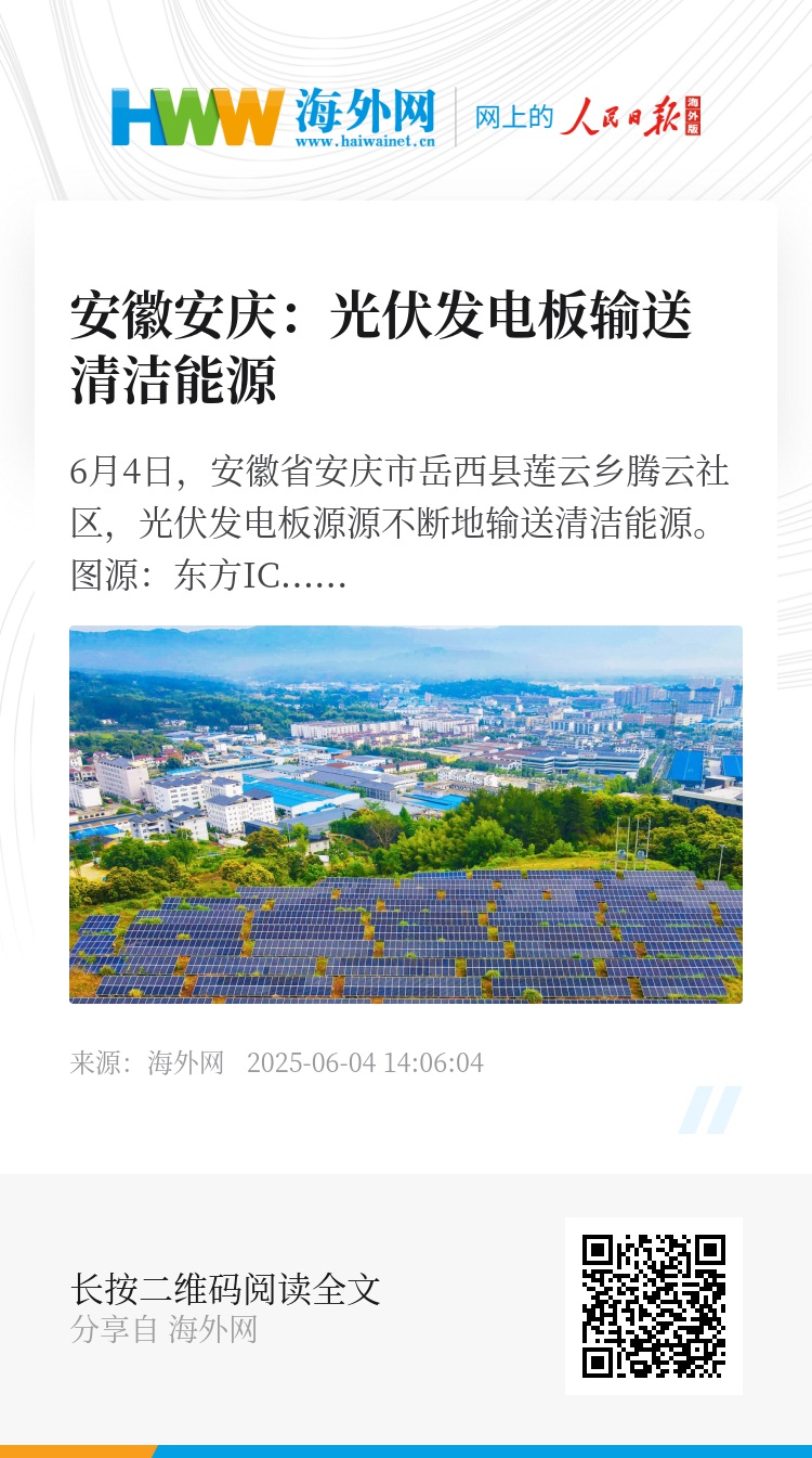 32867993,.安徽安庆:光伏发电板输送清洁能源,.2025-06-04 14:49:04,.204309,.陈亚楠、张荣耀