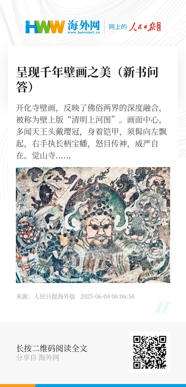 答:为记录和呈现受损的壁画,本书主编杨平20多年前就带领团队,自费数百万元,走访了众多山西古代寺观,拍摄了大量的壁画、彩塑照片,保存下珍贵影像。我们了解到,也有一些艺术家、壁画专家通过临摹,留下壁画图像。此外,使用大型扫描仪对整面墙壁进行扫描,是目前古代壁画数字化保存的主要途径。我们从事的图书出版,也是留存古代壁画的一种方式。目前,古代壁画的数字化工作还处于起步阶段,有很多方面需要进一步完善。