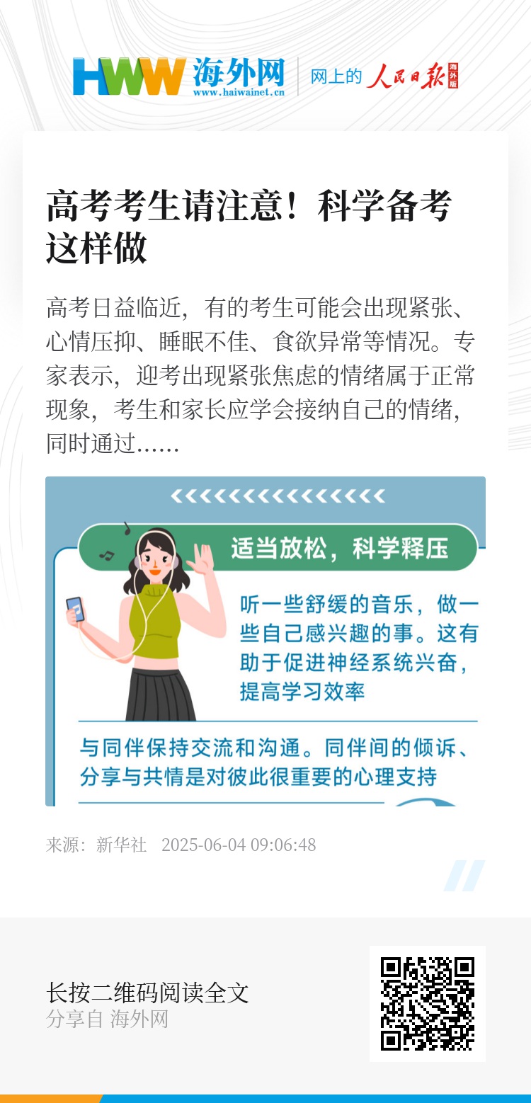 高考日益临近,有的考生可能会出现紧张、心情压抑、睡眠不佳、食欲异常等情况。专家表示,迎考出现紧张焦虑的情绪属于正常现象,考生和家长应学会接纳自己的情绪,同时通过科学的释压方法积极调节,轻松上阵应对考试。