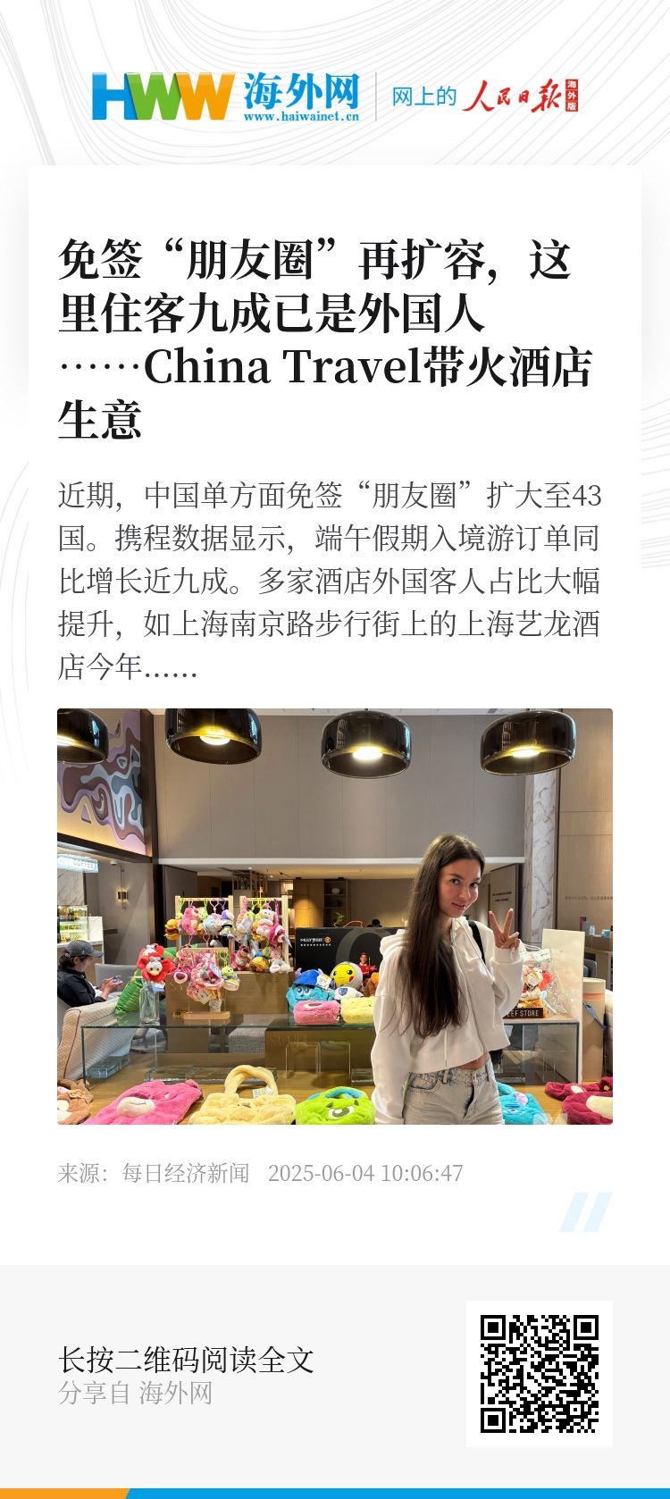 2024年伊始,China Travel就开始在海外走红,随着免签国家数量增加和过境免签时间延长,越来越多的外国人来到中国。在外国人入住政策放开后,上海艺龙酒店的外国客人占比也越来越高,今年4月,其外国客人入住占比高达90%。
