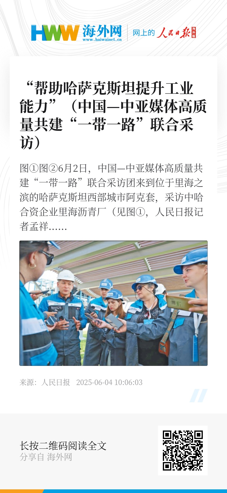 (人民日报哈萨克斯坦阿克套6月3日电 人民日报记者 谢亚宏 人民网记者 俄 布)