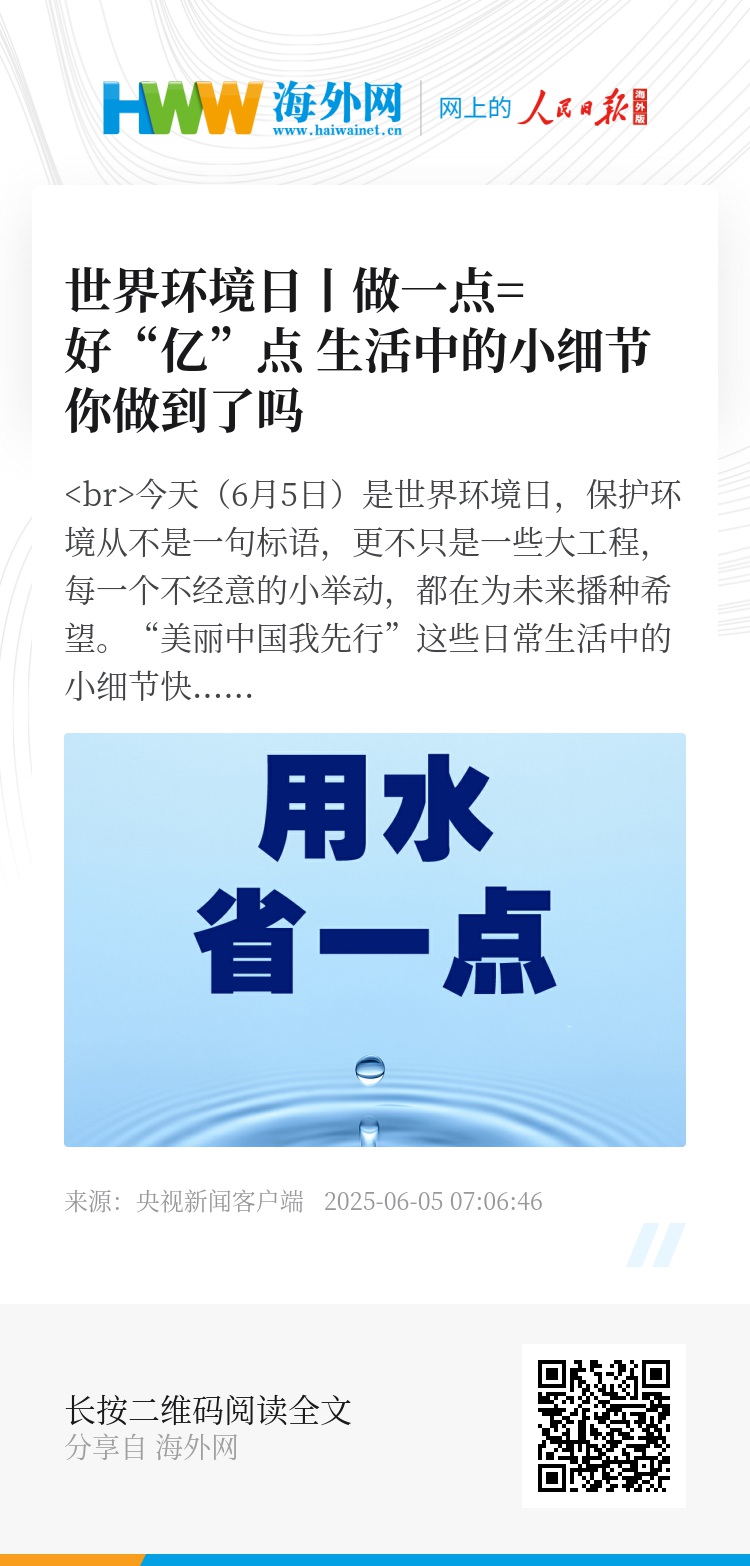 今天(6月5日)是世界环境日,保护环境从不是一句标语,更不只是一些大工程,每一个不经意的小举动,都在为未来播种希望。