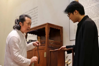 著名学者、明清家具研究者谭向东与大家之家总经理、福建省工艺美术大师林锐群交流“联邦棍”在明式官帽椅中的应用