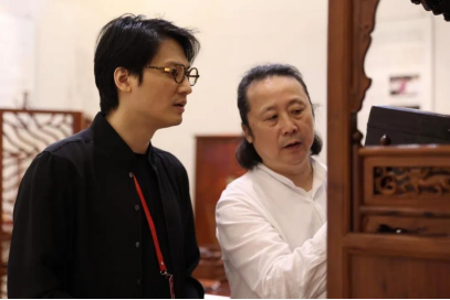 著名学者、明清家具研究者谭向东与大家之家总经理、福建省工艺美术大师林锐群合影留念