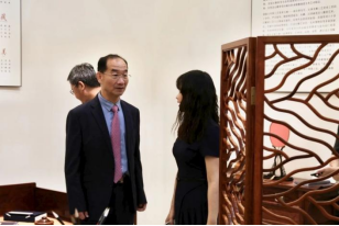 福建省工业和信息化厅副厅长郑伟与大家之家总经理、福建省工艺美术大师林锐群亲切交流莆仙雕刻技艺的风格及特点