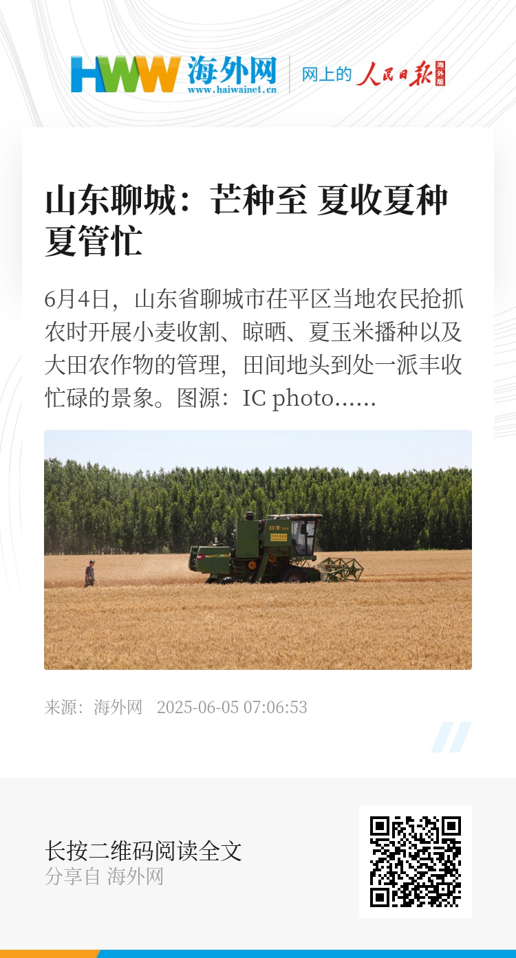 32868153,.山东聊城:芒种至 夏收夏种夏管忙,.2025-06-05 07:02:53,.204441,.张荣耀、李萌