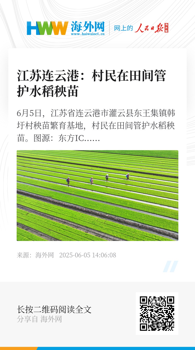 32868273,.江苏连云港:村民在田间管护水稻秧苗,.2025-06-05 14:49:08,.204309,.陈亚楠、卢思宇