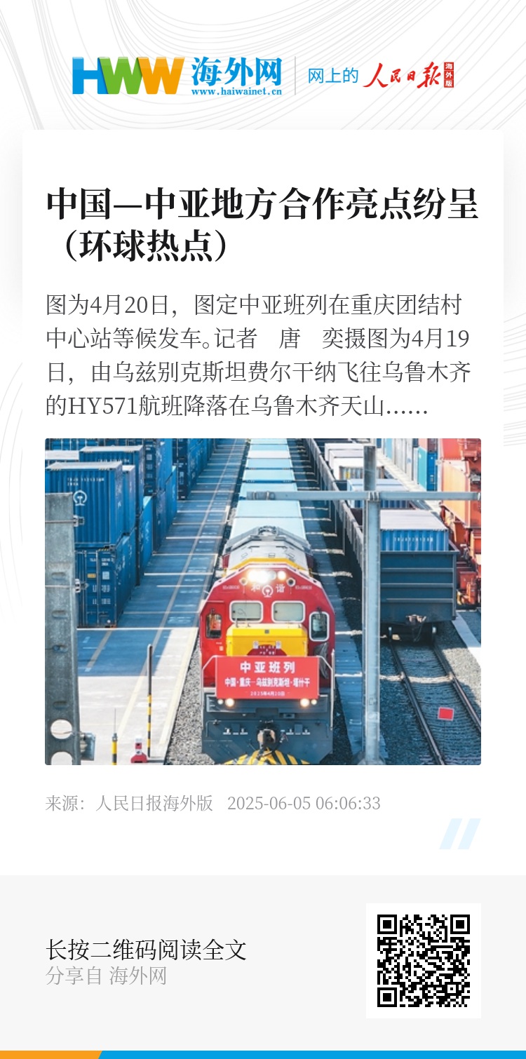 邓浩:未来,经贸合作仍将是中国和中亚国家地方合作的重点。随着中吉乌铁路、跨里海国际运输走廊等项目推进,中国和中亚国家互联互通迎来新发展,双方在物流、可再生能源等领域将迸发更多合作潜能。