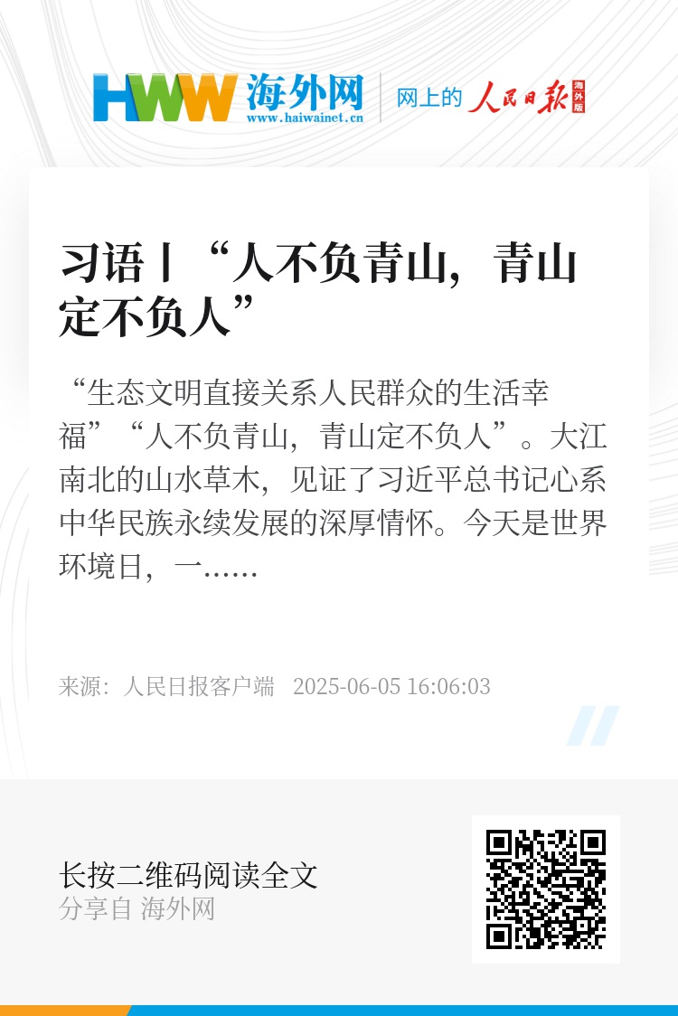 “生态文明直接关系人民群众的生活幸福”“人不负青山,青山定不负人”。大江南北的山水草木,见证了习近平总书记心系中华民族永续发展的深厚情怀。今天是世界环境日,一起重温总书记对生态环境保护的嘱托和期盼。