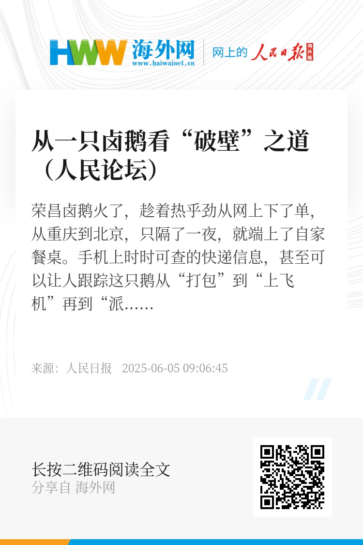 从“一只鹅”飞到百姓餐桌的过程,可以咂摸数字中国正在迸发出的“破壁”力量。