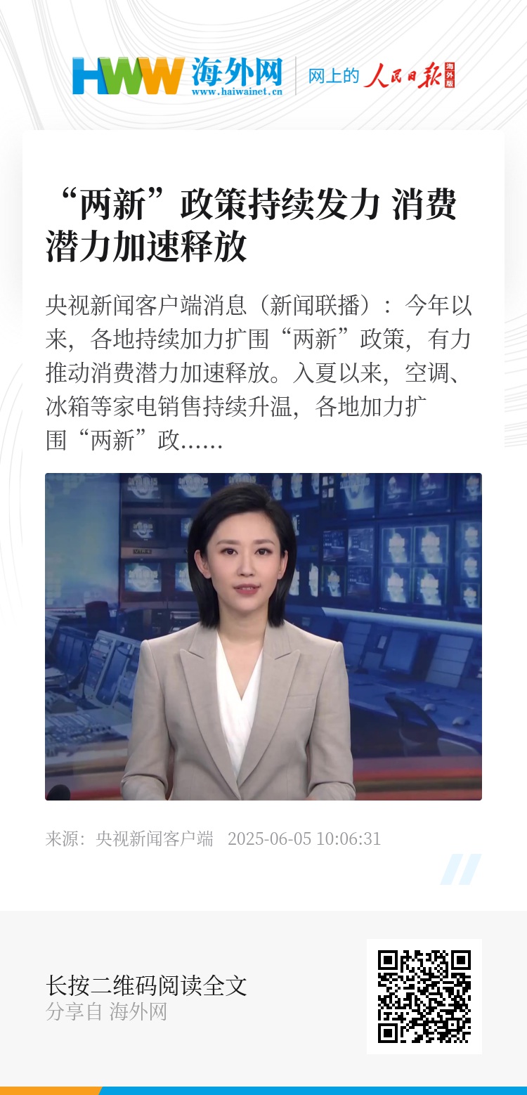 央视新闻客户端消息(新闻联播):今年以来,各地持续加力扩围“两新”政策,有力推动消费潜力加速释放。
