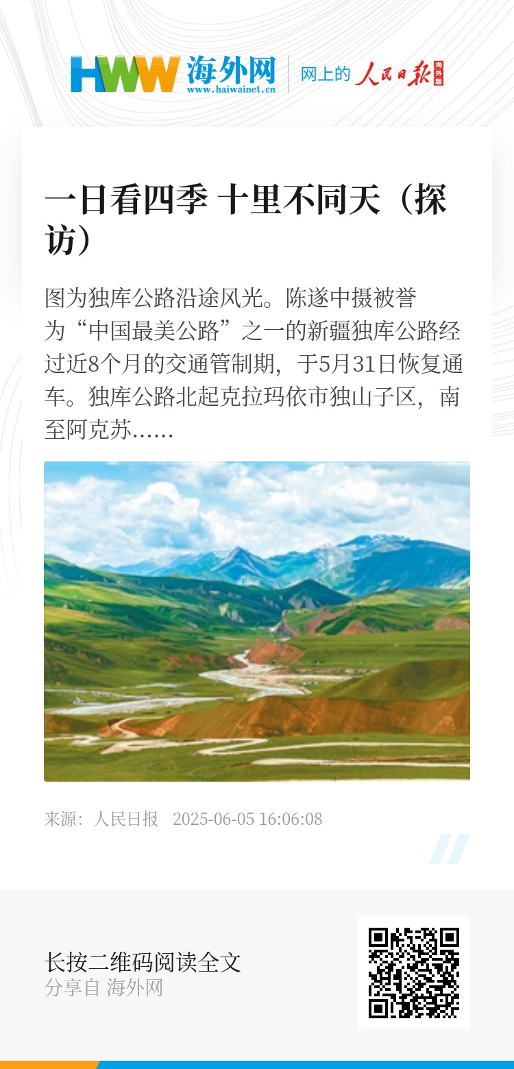 被誉为“中国最美公路”之一的新疆独库公路经过近8个月的交通管制期,于5月31日恢复通车。