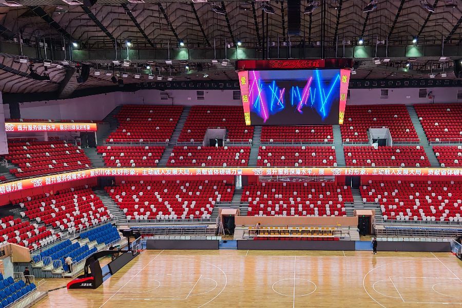 在本届世运会中,四川省体育馆将承办第十二届世运会泰拳和自由搏击两个项目的比赛。走入四川省体育馆内,明亮、开阔的场地映入眼帘,场馆上方的大屏幕循环播放着世运会宣传视频,迎接着每一个进入场馆的市民游客。四川省体育馆被誉为“西南第一馆”,始建于1988年,也是西南地区首个现代化万人体育馆。为了迎接世运会的到来,今年3月起,场馆开启了改造升级,完成了扩声系统和LED大屏显示系统改造,新增了漏斗屏和环形屏,更能满足高标准国际体育赛事竞赛需求。