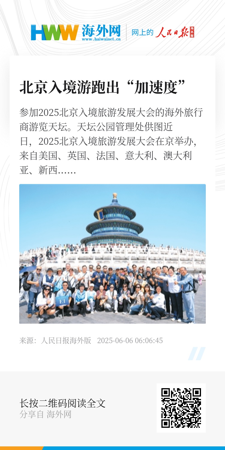 近日,2025北京入境旅游发展大会在京举办,来自美国、英国、法国、意大利、澳大利亚、新西兰、阿联酋、马来西亚、日本、韩国等40多个国家和地区的270多位海外旅行商代表及亚太旅游组织、世界旅游城市联合会、世界城市文化论坛等国际组织代表参会。