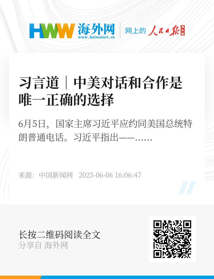6月5日,国家主席习近平应约同美国总统特朗普通电话。习近平指出——