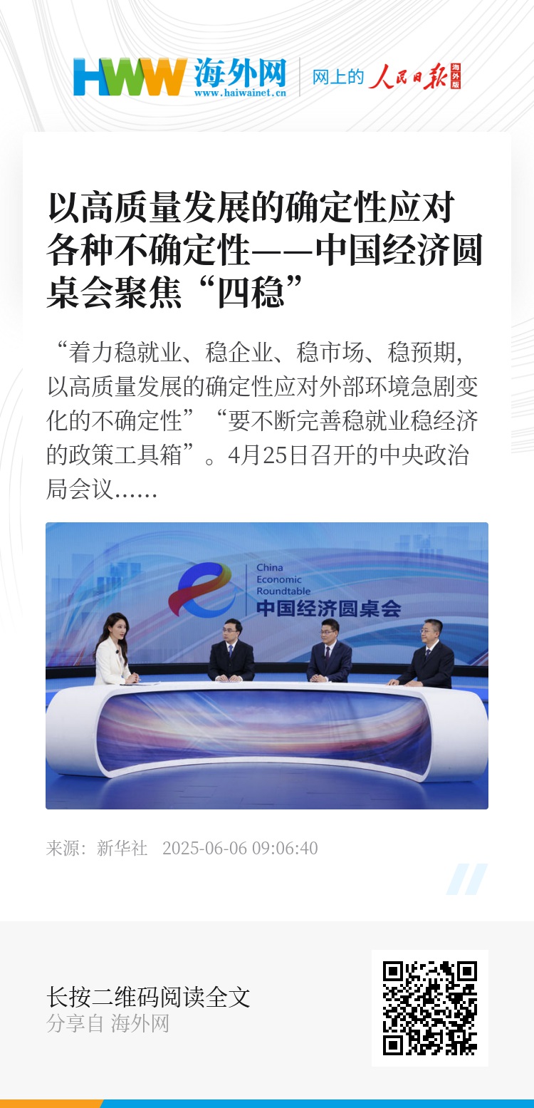 6月5日,新华社推出第十八期“中国经济圆桌会”大型全媒体访谈节目,邀请国家发展改革委综合司副司长丁琳、人力资源社会保障部就业促进司副司长陈勇嘉、中国人民银行金融研究所所长丁志杰,共话“四稳”最新进展。
