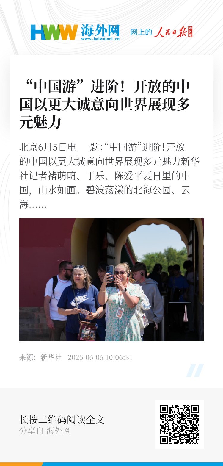新华社北京6月5日电 题:“中国游”进阶!开放的中国以更大诚意向世界展现多元魅力