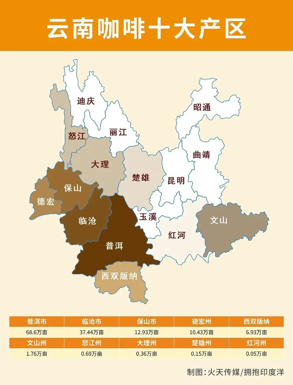 德宏州是云南省小粒咖啡核心种植区之一,全州50个乡镇中有29个开展咖啡种植,形成以卡蒂姆7963品种为主导的产业格局。云南咖啡豆占全国总量的98%以上,其中80%的品种来自德宏热带农业科学研究所。